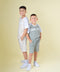 Conjunto niño en tela algodón estampado new york, en bermuda burda estampada.